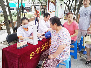 2017年9月9日上午,南京华肤皮肤病研究所志愿者服务队来到了宝塔街道金陵五村休闲广场 ,为居民进行免费的健康义诊,包括测血糖、量血压、健康预约咨询、发放生活用品等服务,为小区居民送来了健康服务和人文关怀。