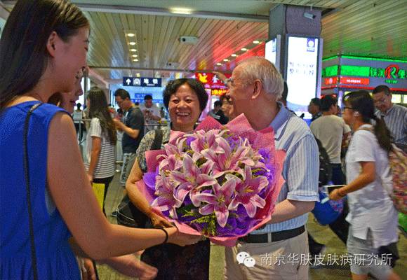 南京华肤皮肤病研究所单荣娣院长带领医务人员迎接邢广梅教授