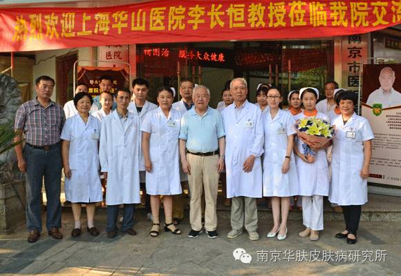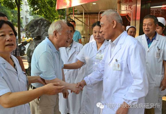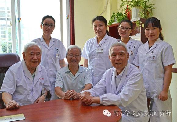 皮肤病泰斗与南京华肤皮肤病专家合影(从左至右:邢广梅、邢广梅、邢广梅、陈永芳、张荣法)