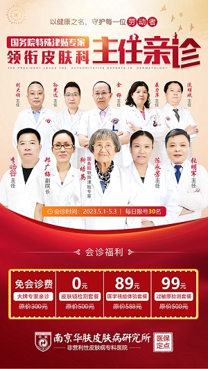 【五一看诊好时机】5月1日-5月3日,国务院特殊津贴专家领衔亲诊,重点诊治皮肤疑难杂症!守护,是医务工作者的初心,坚持,是医务工作者的风采,“五一”小长假即将来了!南京华肤皮肤病研究所不放假!5月1日-5月3日,国务院特殊津贴专家领衔皮肤科名医亲诊。以健康之名,这个劳动节,守护在“宁”!