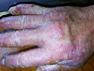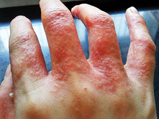经过南京华肤皮肤病研究所邢广梅主任检查,确诊张先生患上的是汗疱疹。一种典型的出汗不良性湿疹,而且会常年的反复发作,奇痒难忍。经过中药浸洗、湿敷、中药调理,两个疗程即治疗完毕。