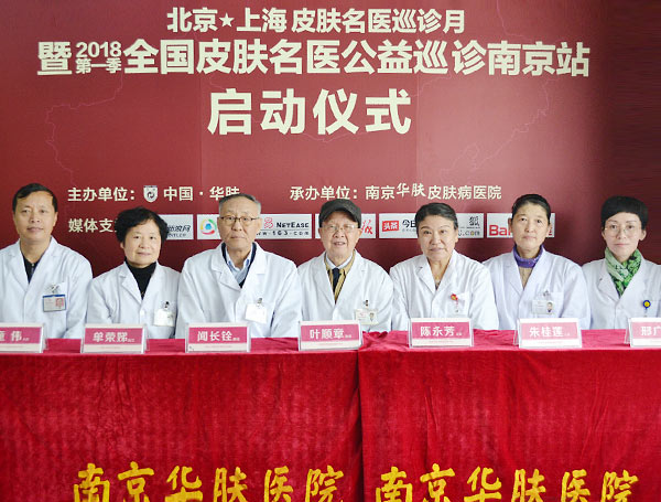 为积极响应国家卫计委“服务百姓健康行动”和“健康中国2030”号召,把人民健康放在优先发展的战略地位,努力全方位全周期保障人民健康。以实际行动践行“敬佑生命、救死扶伤、甘于奉献、大爱无疆”的崇高精神,让全社会共享优质医疗资源,切实方便群众就医,缓解群众看病难、看名医更难的问题,本着“专家到基层,群众多受益”的原则,“北京、上海皮肤名医巡诊月暨2018第一季全国皮肤名医巡诊南京站”启动仪式于2018年3月16日在南京华肤皮肤病研究所正式启动。